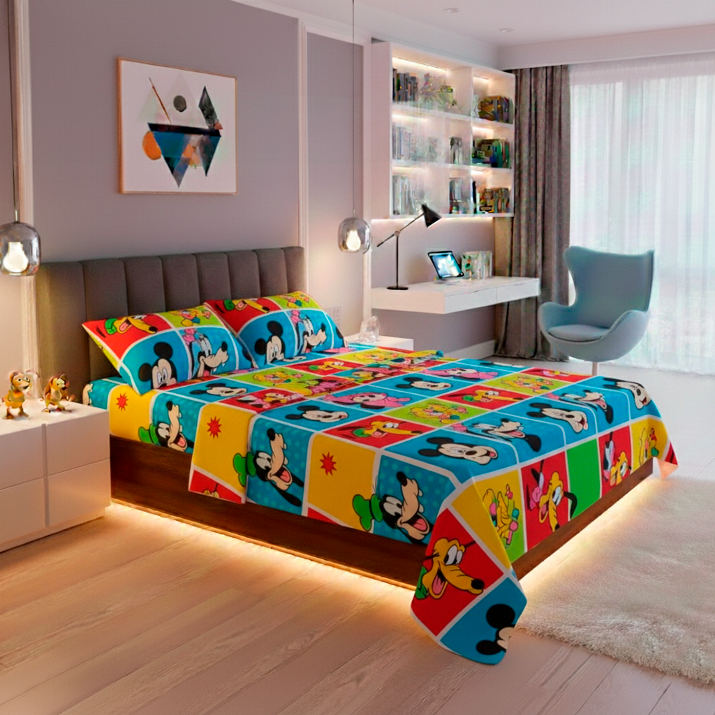 Convierte cada noche en una aventura con nuestras sábanas Disney: suaves, coloridas y llenas de tus personajes favoritos. ¡Perfectas para hacer de la hora de dormir el mejor momento del día!
