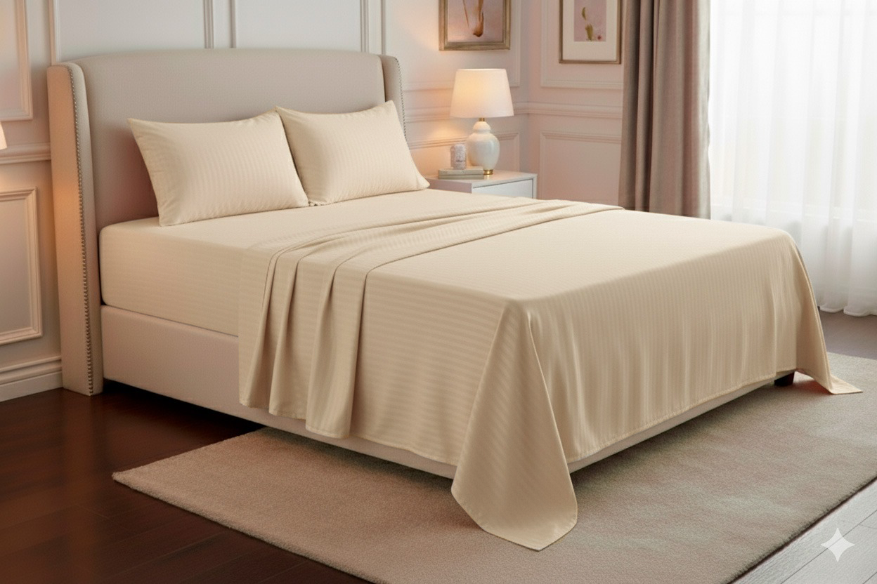 Medida: Para cama de 1,40mtr incluye: 1 sobre sábana de 194cm x 244cm + 1 sábana ajustable de 140cm x 190cm – 28cm de cajón + 2 fundas para almohadas de 50cm x 70cm.