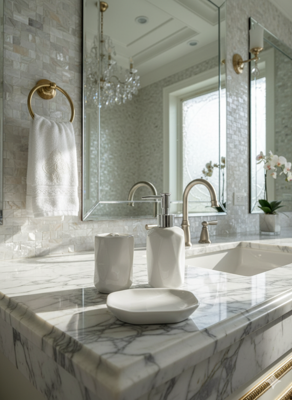 Transforma tu baño en un espacio de lujo con nuestro set de baño en pasta. Diseñado para combinar funcionalidad y estilo, es el toque perfecto para un ambiente sofisticado. 💎🏡