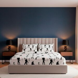 Tendido de cama Plumas – Blanco con plumas Doradas